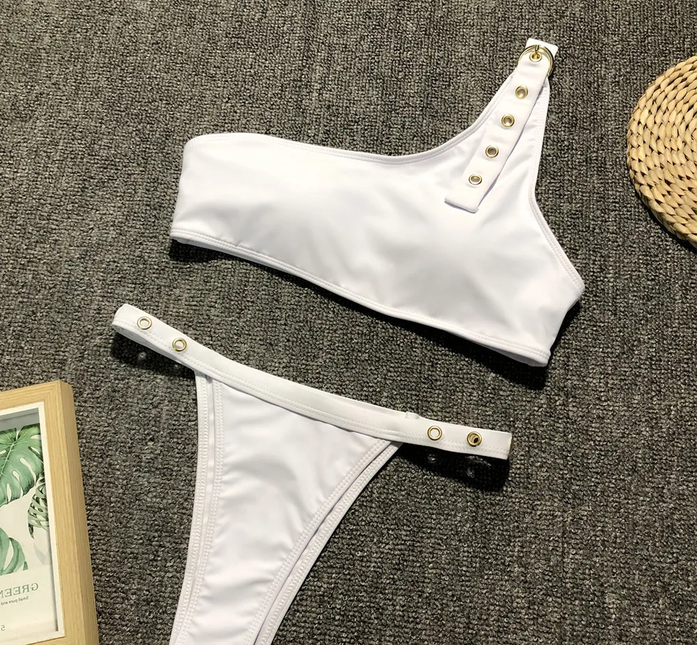 White One Shoulder Bowtie Bikini Set in 2019 | Fashion