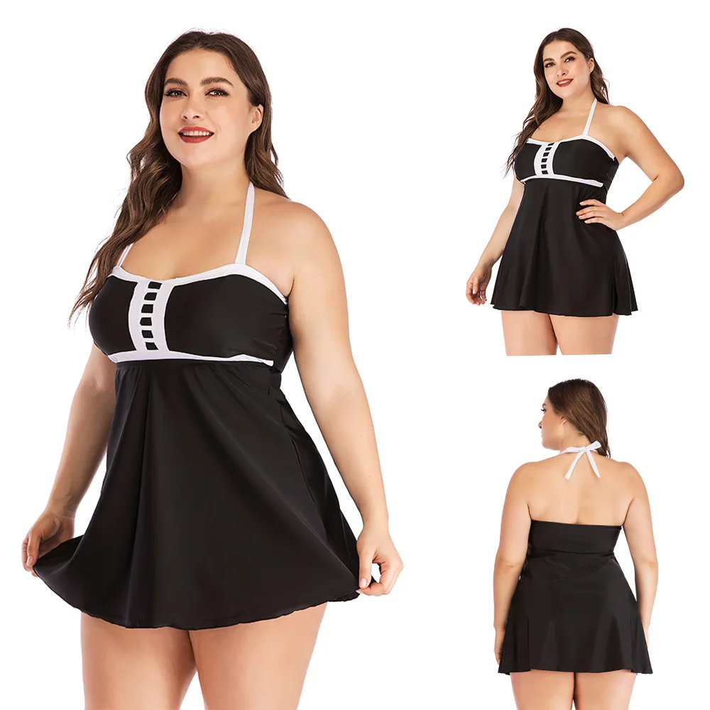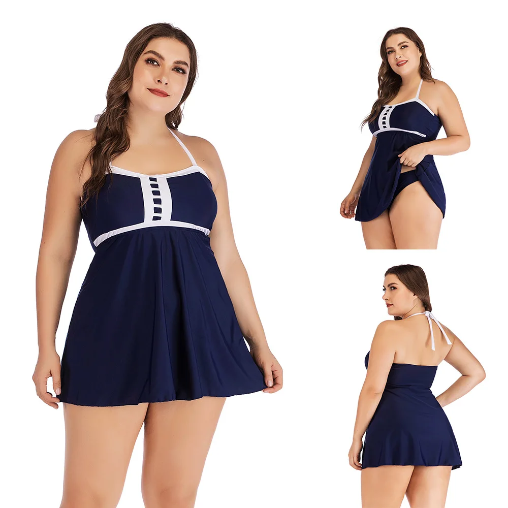 DAZONWAY Plus Size Skirt Style Tankini Sexy Conservative Slim Swimsuit Split Swimswear Bikini Black Blue Wire Free Chest Pad 5XL Special Price