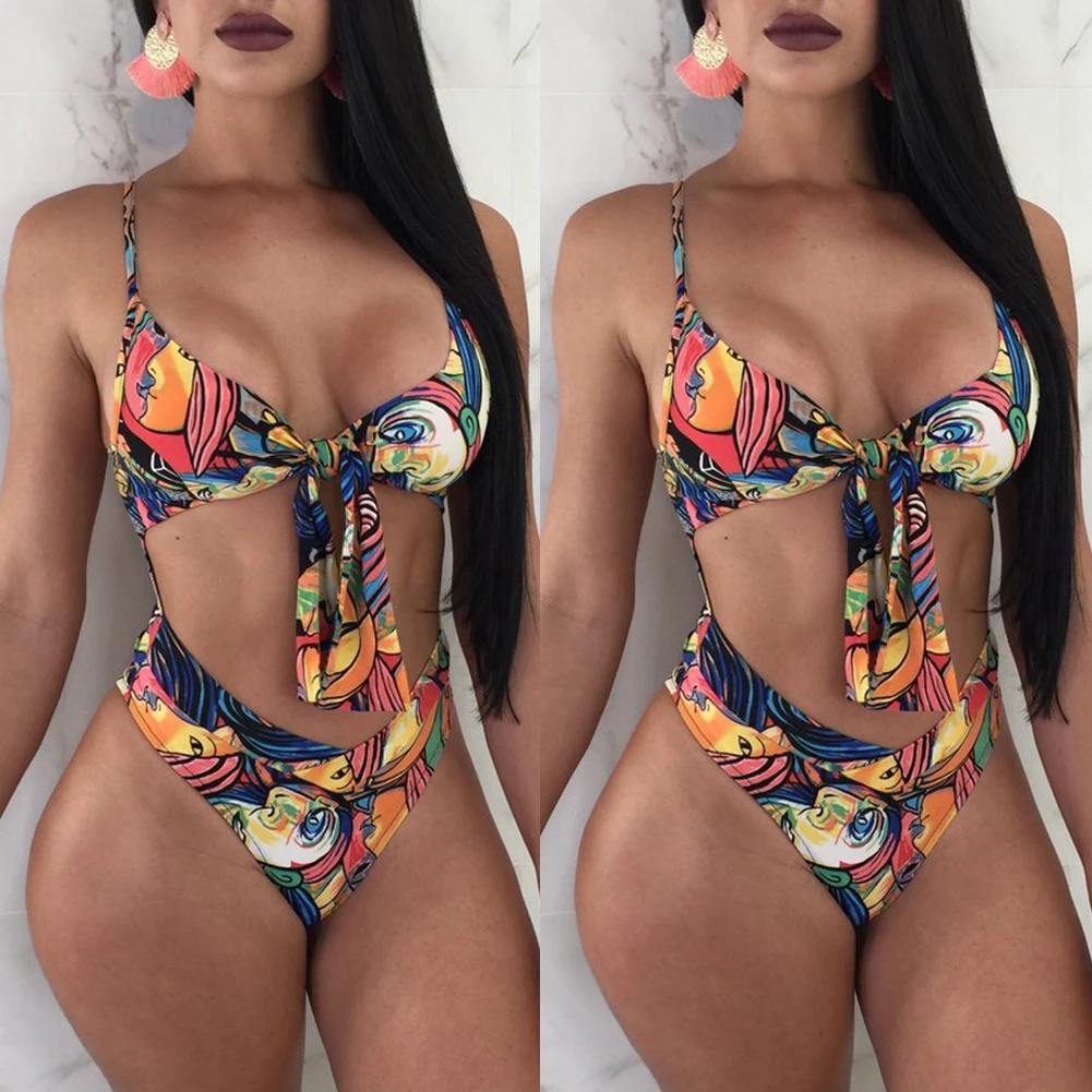 Ladies One Piece Swimsuit Women Triquini Swimwear Swim Beach Wear Print Bandage Cut Out Trikini Monokini Swimming Bathing Suit Discount Offers