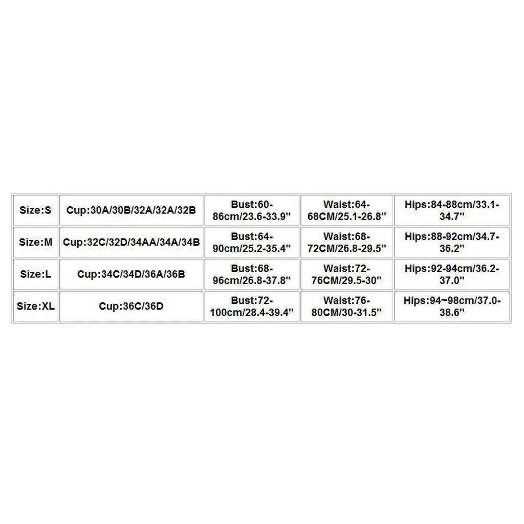 | Size:XL | Cup:36C/36D | Bust:72-100cm/28.4-39.4" | Waist:76-80CM/30-31.5" | Hips:94~98cm/37.0-38.6" |