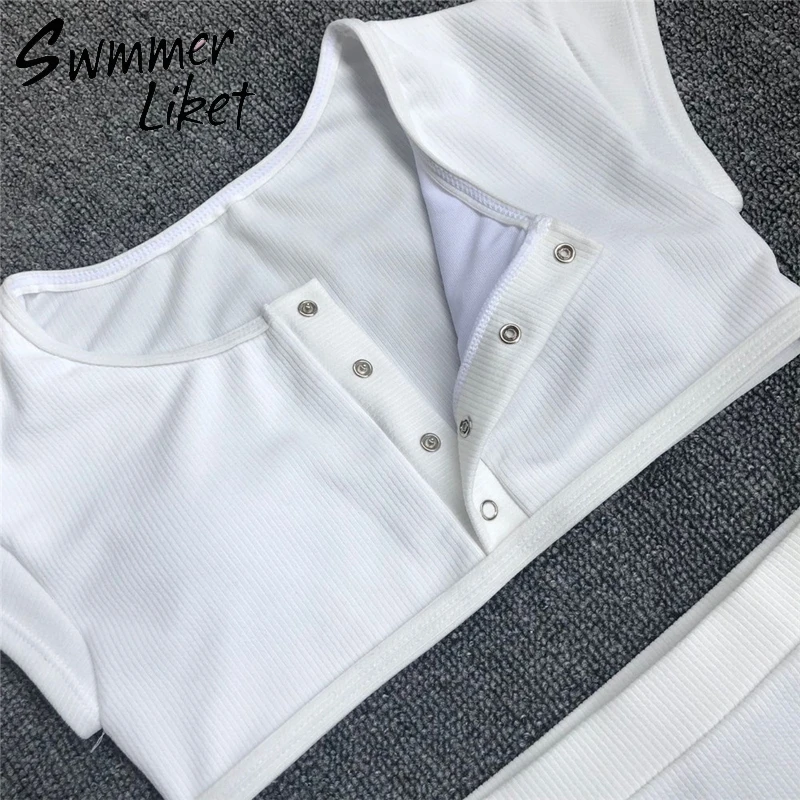 White bikini top short sleeve sports swimwear Summer push