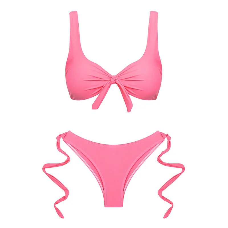 Bikinx Strappy pink swimsuit female bathers Knot bandeau swimwear women two-piece suits Brazilian micro bikini set biquini 2019 Limited Offers