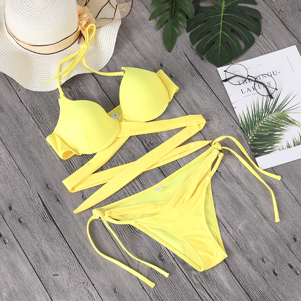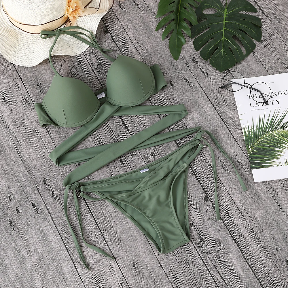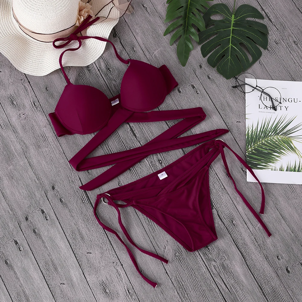 Minimalism Le 2019 Sexy Bikini Set Solid Bikinis Push Up