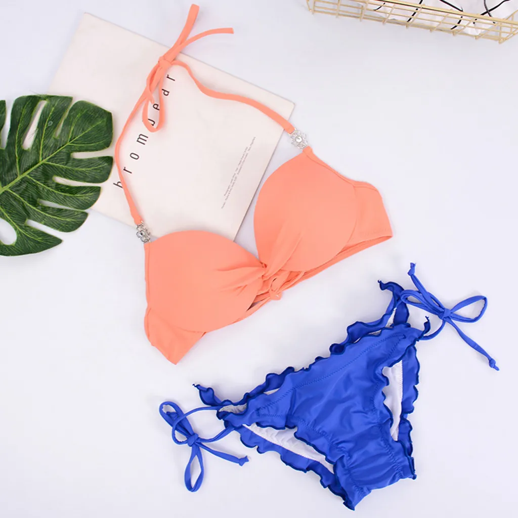 Women Beading Bandage Padded Push-up Bathing Suit Bikini Swimwear Swimsuit