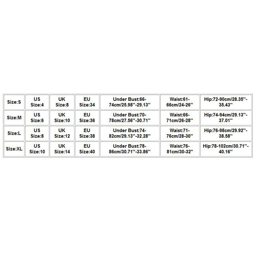 | Size | US Size | UK Size | EU Size | Under Bust | Waist | Hip |