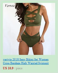 Vertvie Sexy High Waist Women Bikini Set 2018 Solid Cross
