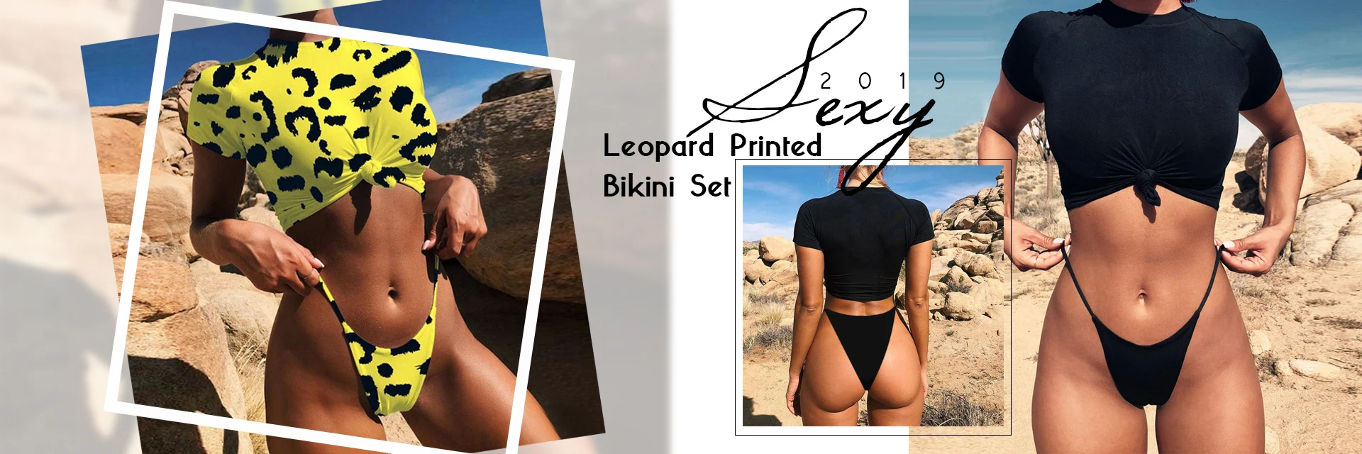 New Solid Leopard Bikini Sexy Swimsuit New 2019 Swimwear