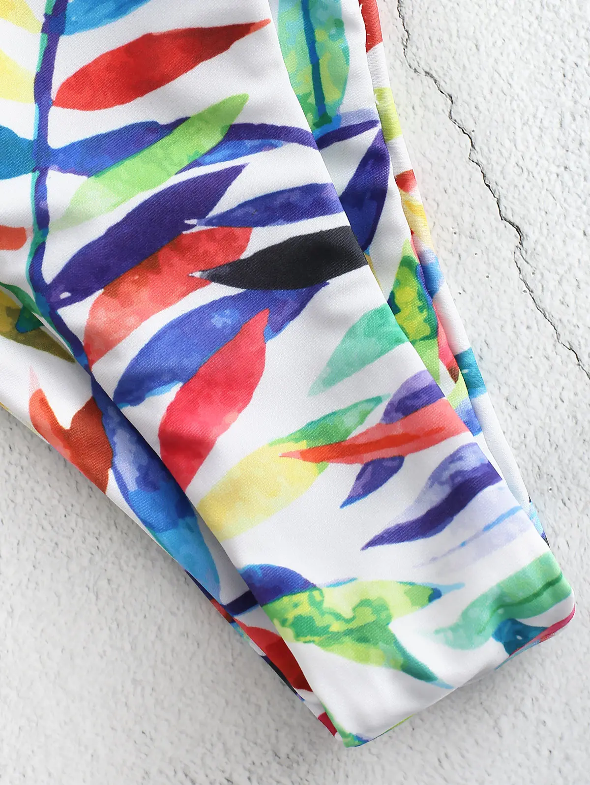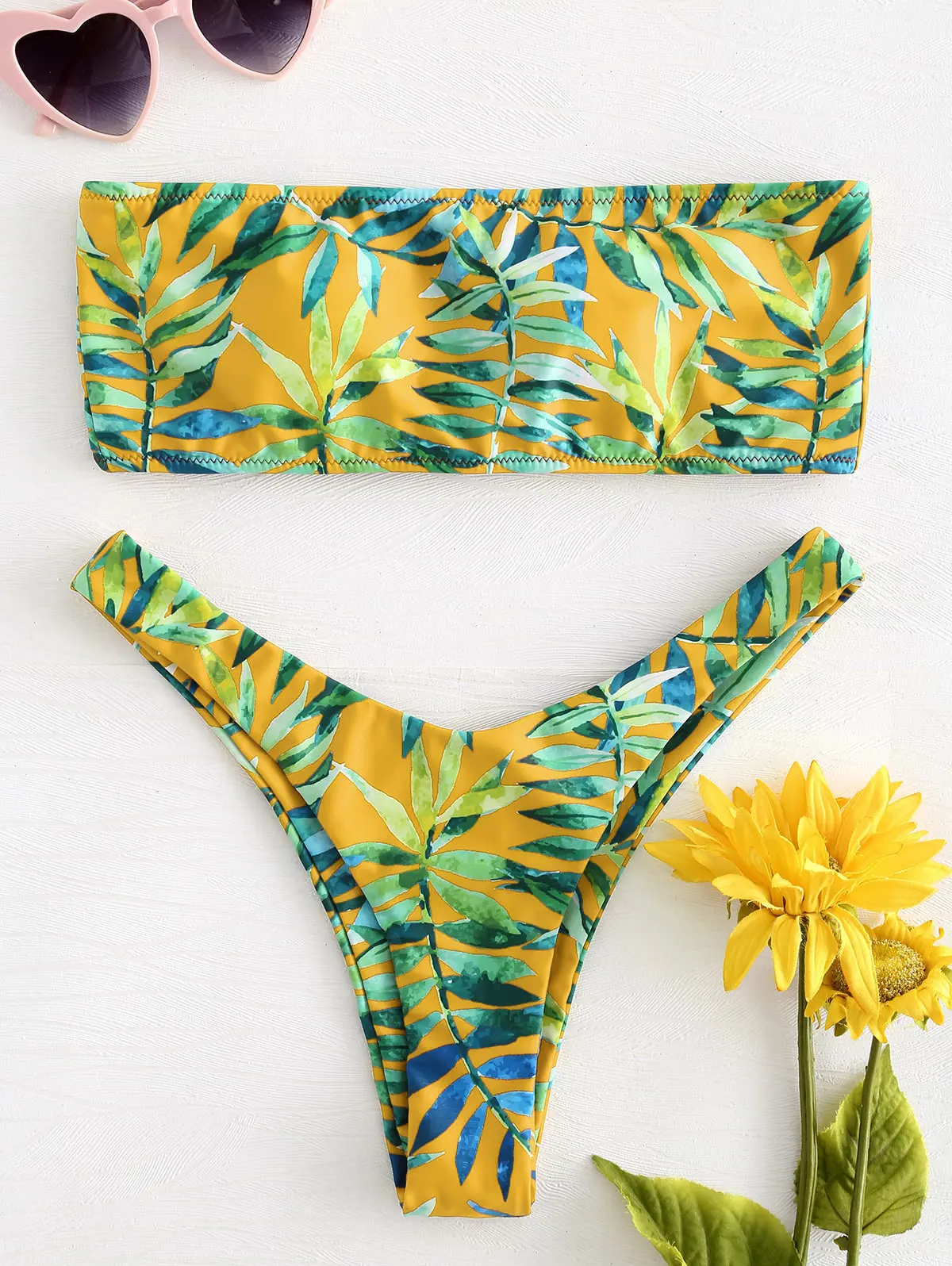 Palm Leaf Strapless High Cut Bikini Set | ZAFUL CLOTHING