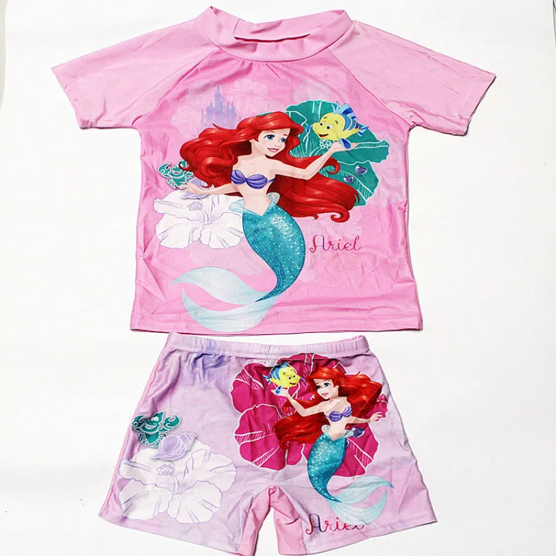 2-11Years Kids Teen Boys Girls Swimwear 2pcs Swim Suit( T Shirt+ Trunk) Beach Swimsuits Bathing Suit Princess Elsa Anna Mermaid Cheap Offers