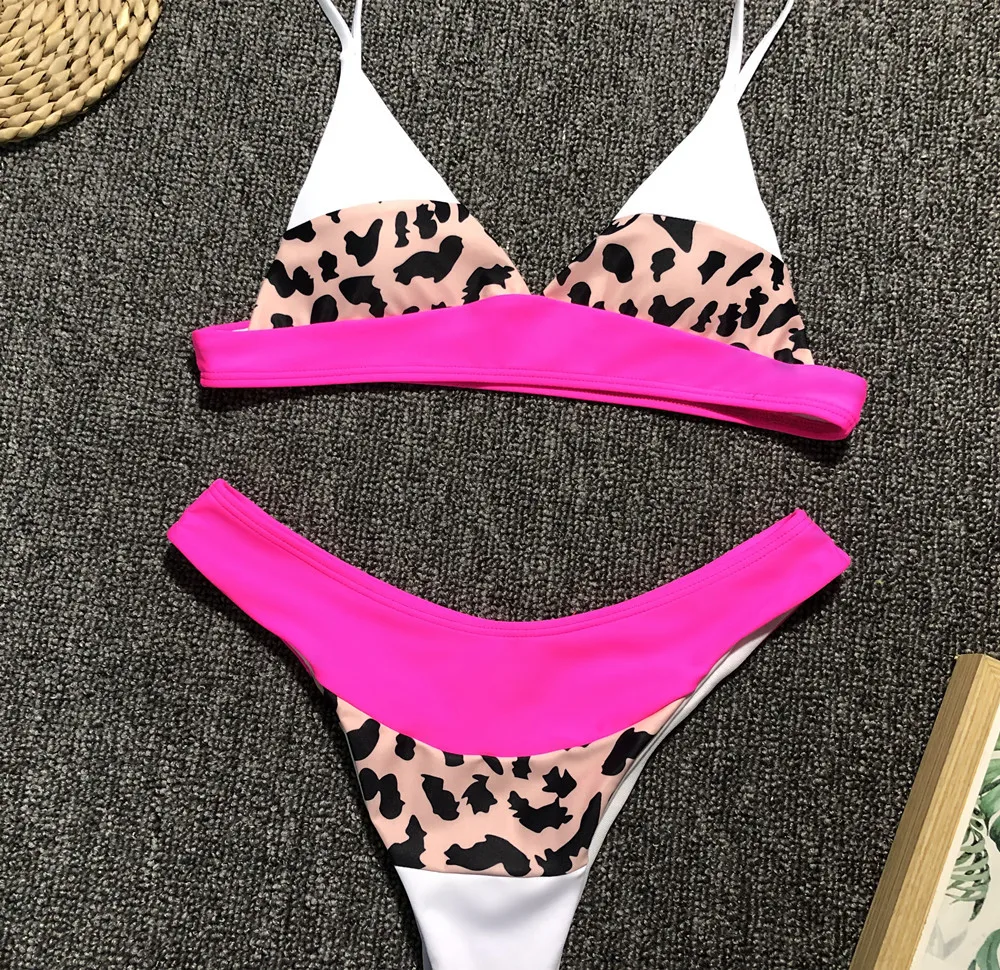Women Leopard Print Crisscross Padded Cheeky Sexy Bikini