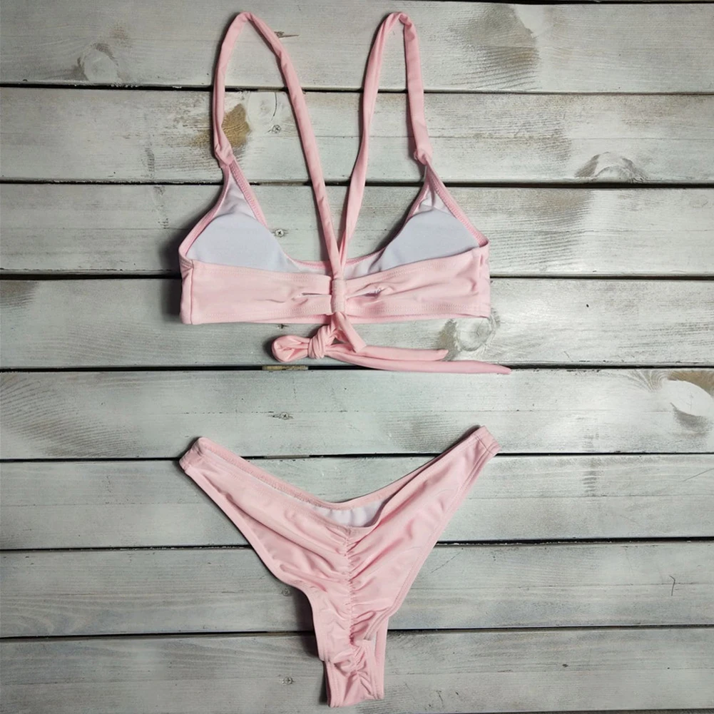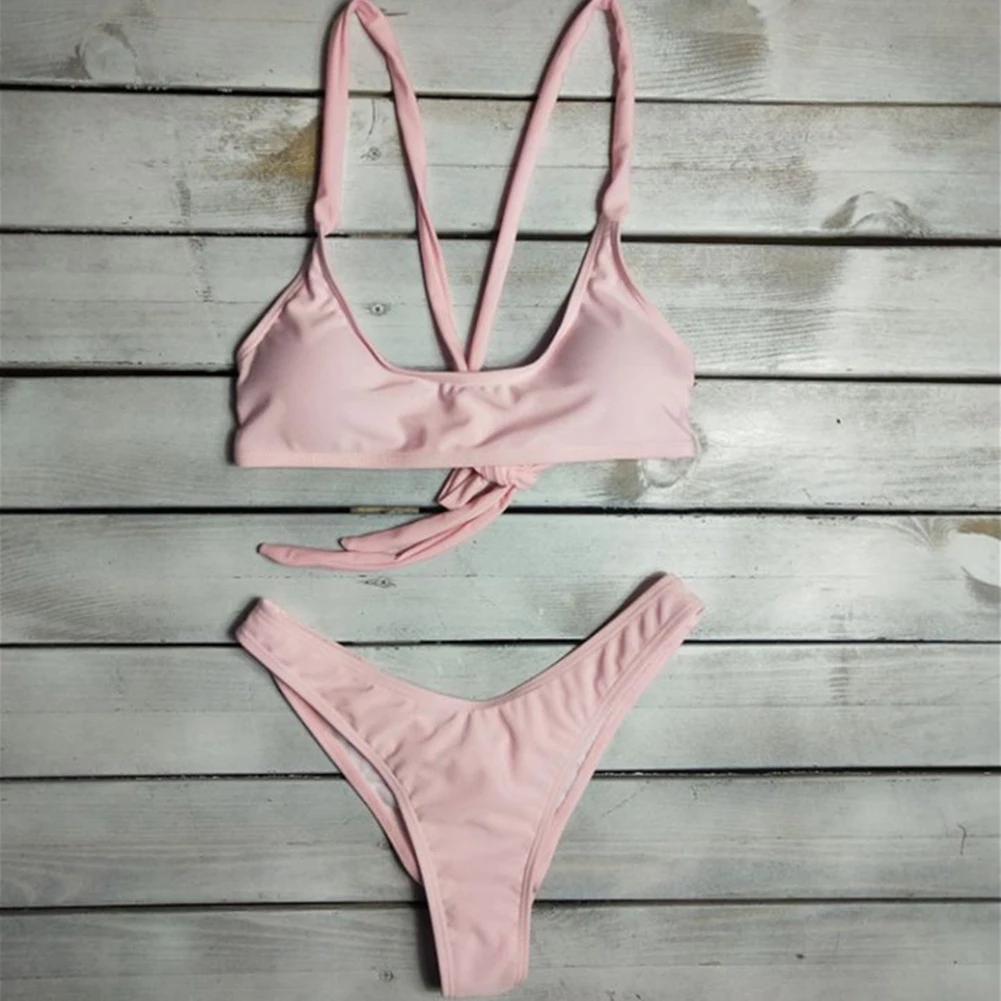 XUNYU Bikini Set Bandage Solid Brazilian Swimwear Two