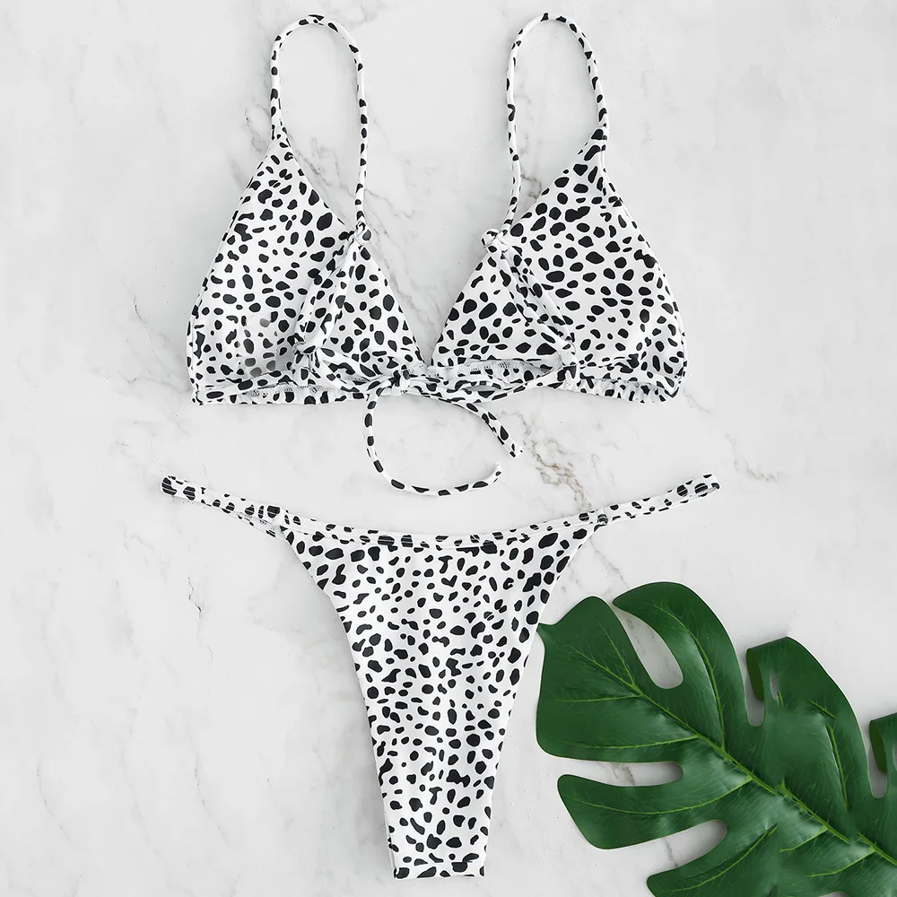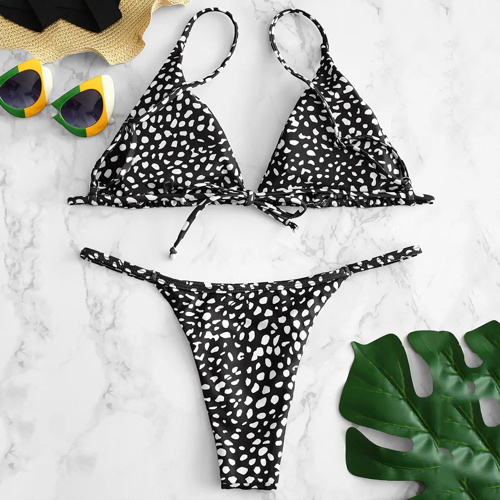 ZAFUL Summer sexy dot swimwear women Wave Point Printed Tie Plunge Bikini Set swimsuit bikinis 2019 mujer hot biquini set