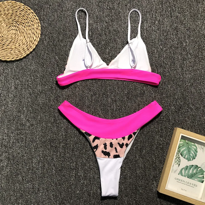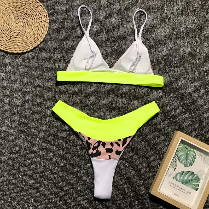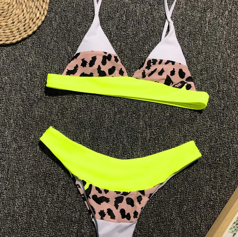 Brazilian neon bikini set High cut thong bikini Triangle swimwear women Push up Bathing suit Leopard swimsuit female summer 2019 Cheap Price