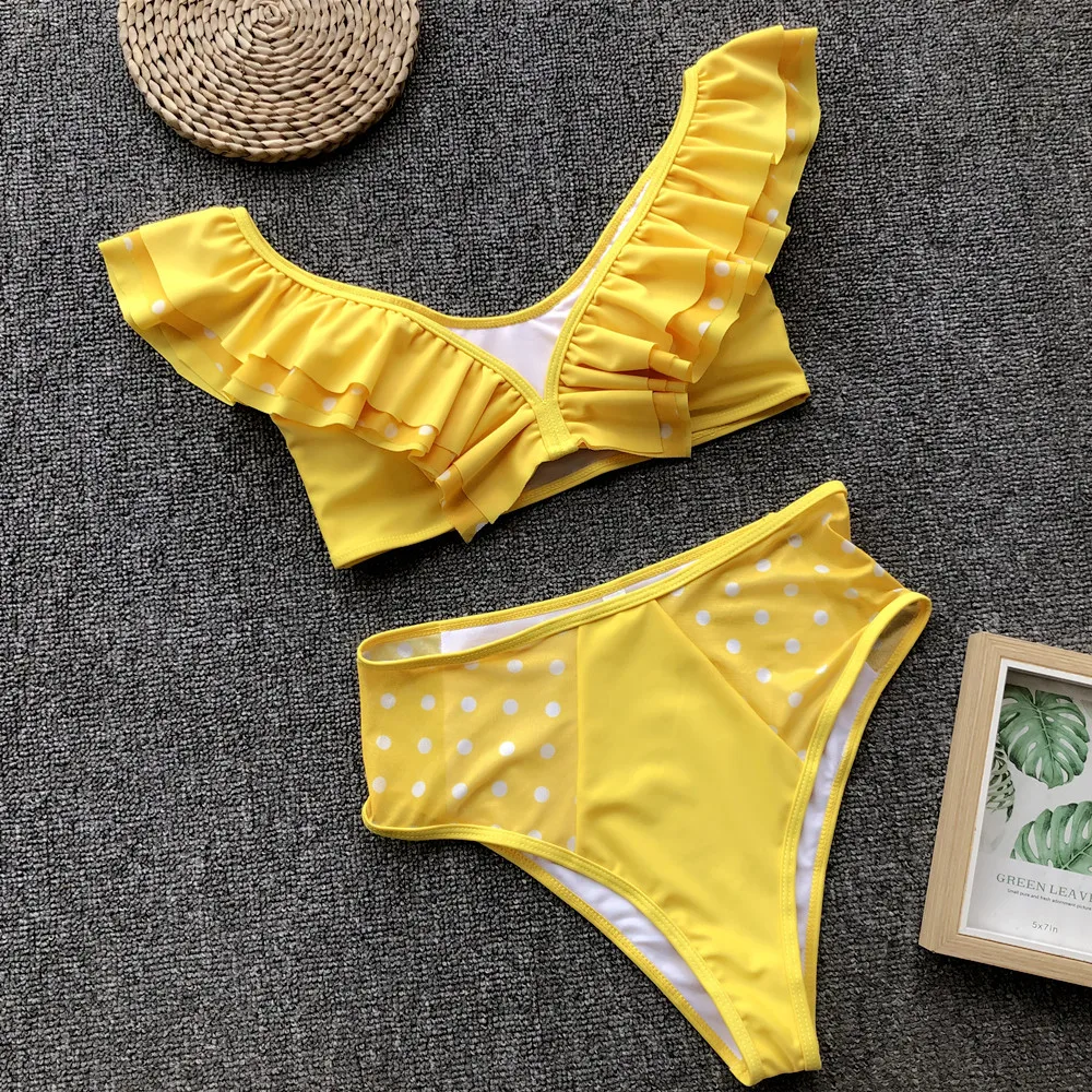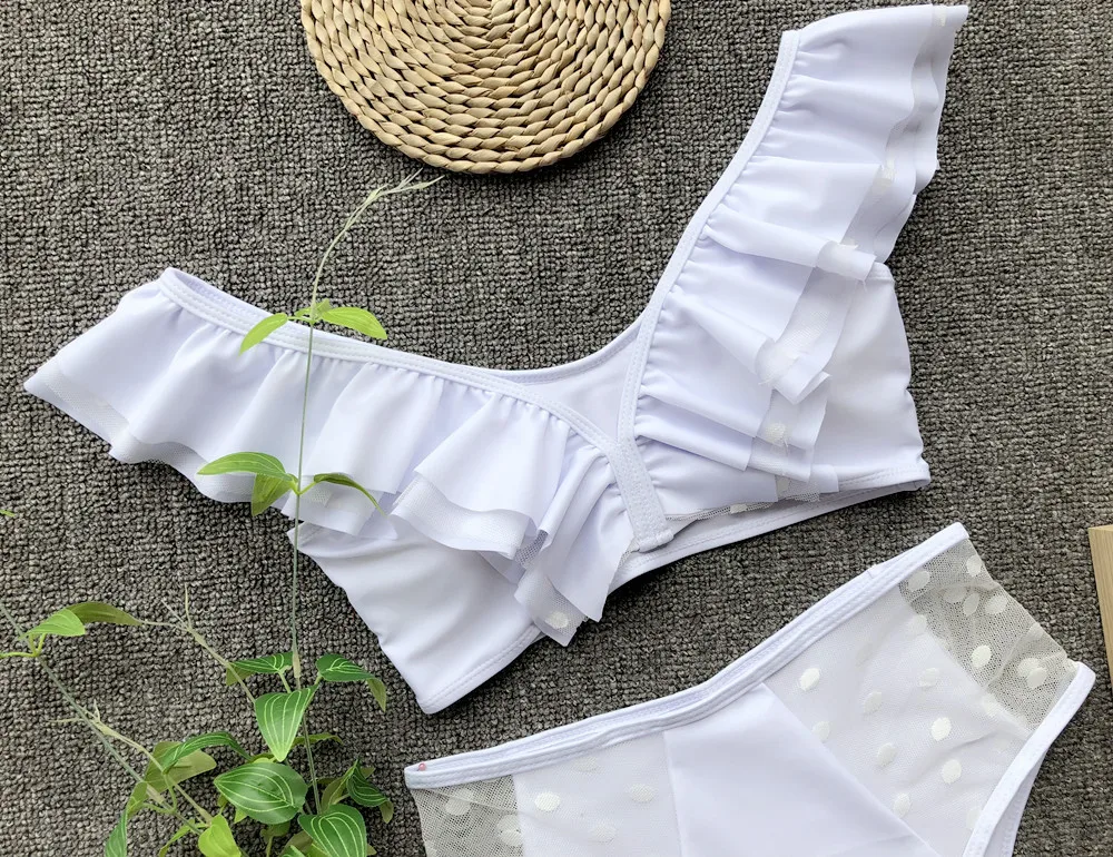 High Waist Bikini Set Sexy Off Shoulder Ruffles Bikini Women Dot Mesh Swimsuit Beach Wear Push Up Biquini Bathing Suit Swimwear Special Price
