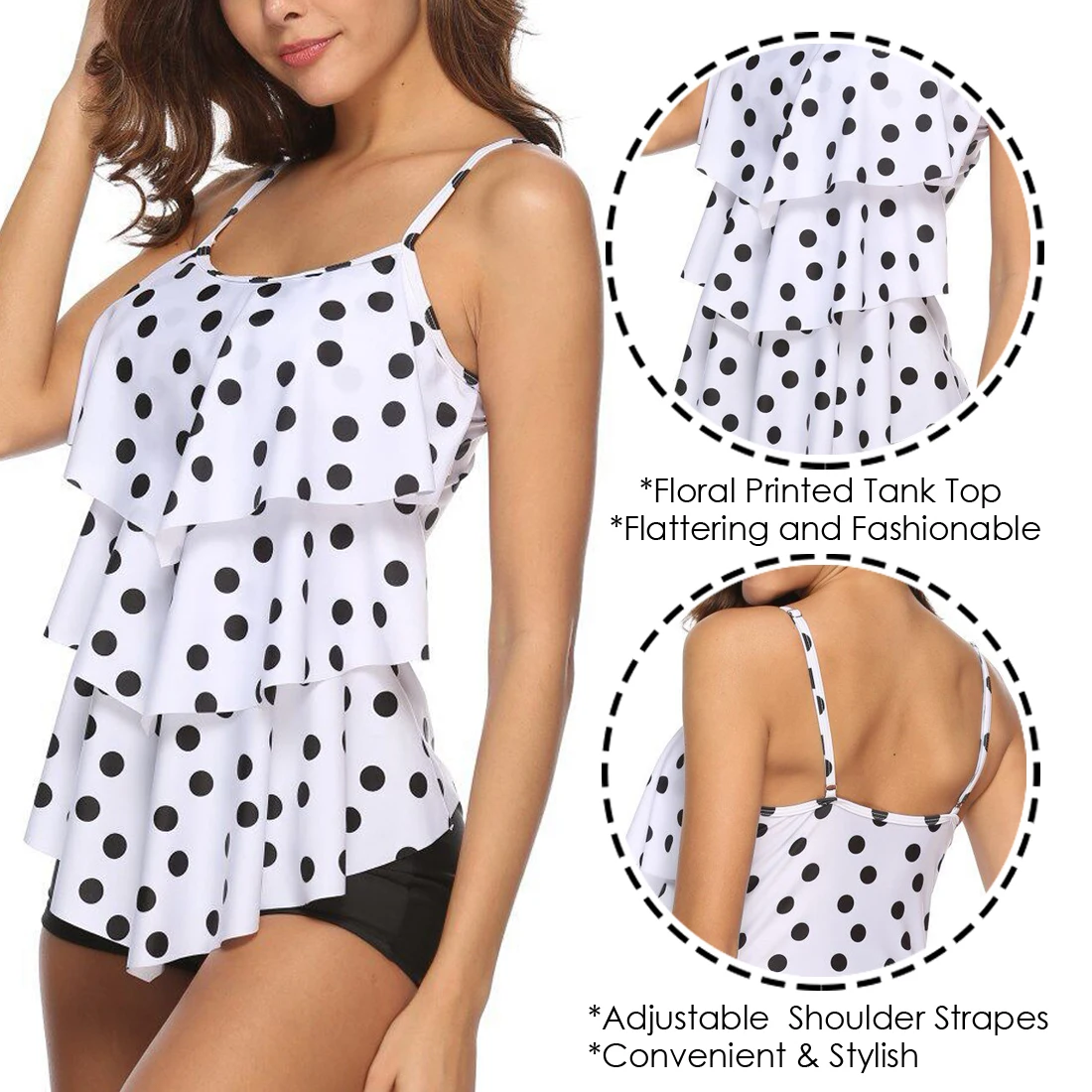 HULKAY Women's Two Piece Flounce Polka Dot Printed Tank