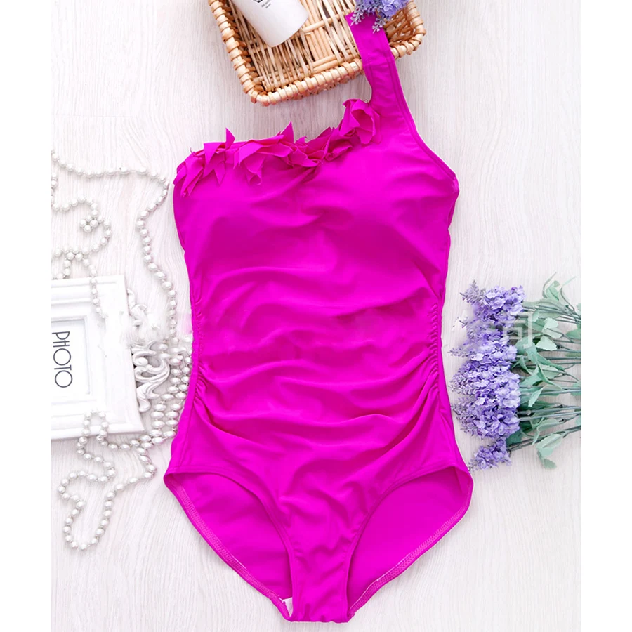 Sexy Women Solid Swimwear One Shoulder Halter One Piece Swimsuit Retro Biquini Bathing Suit Beach Suits Monokini Plus Size S-3XL Discount Offers