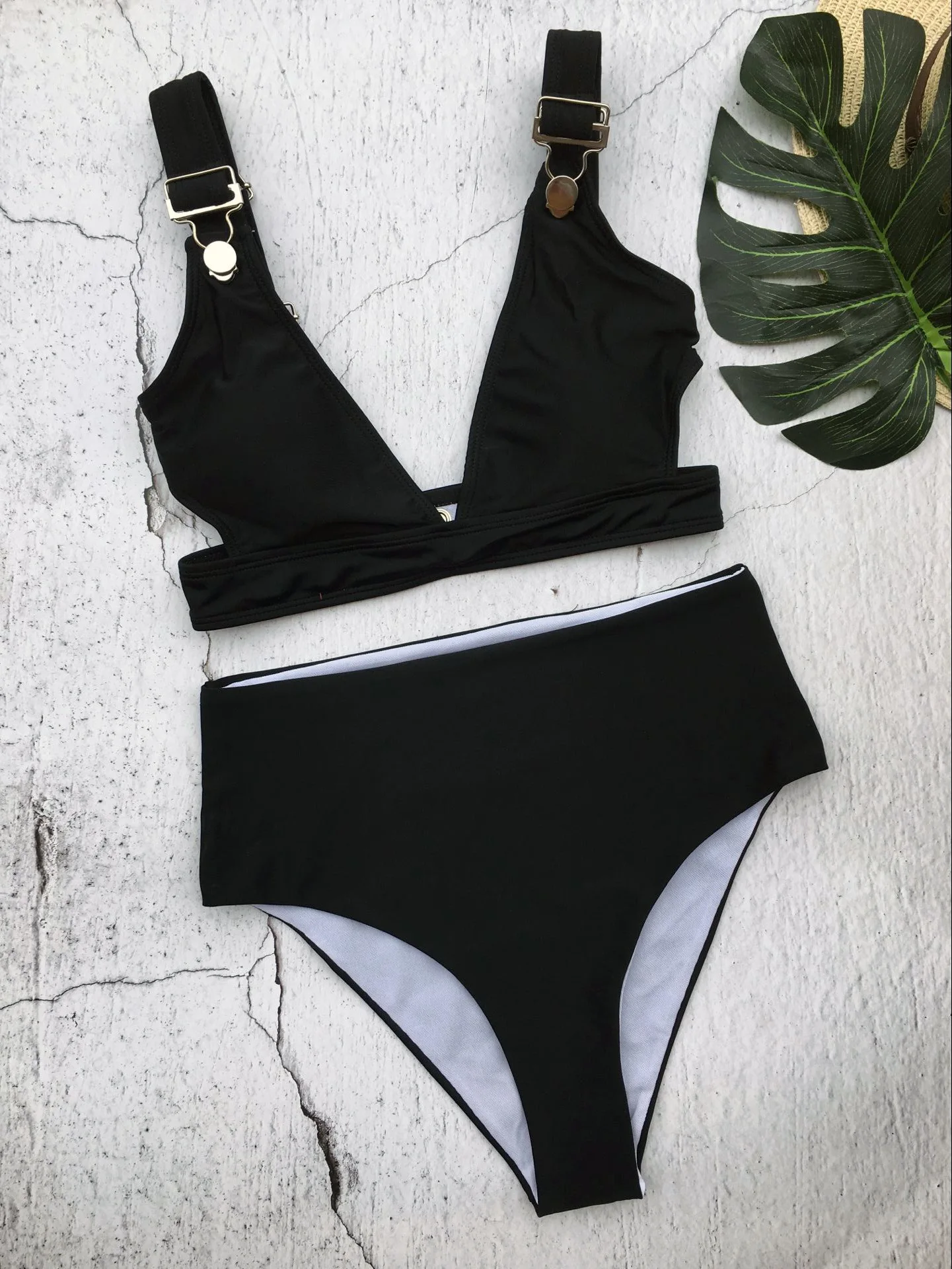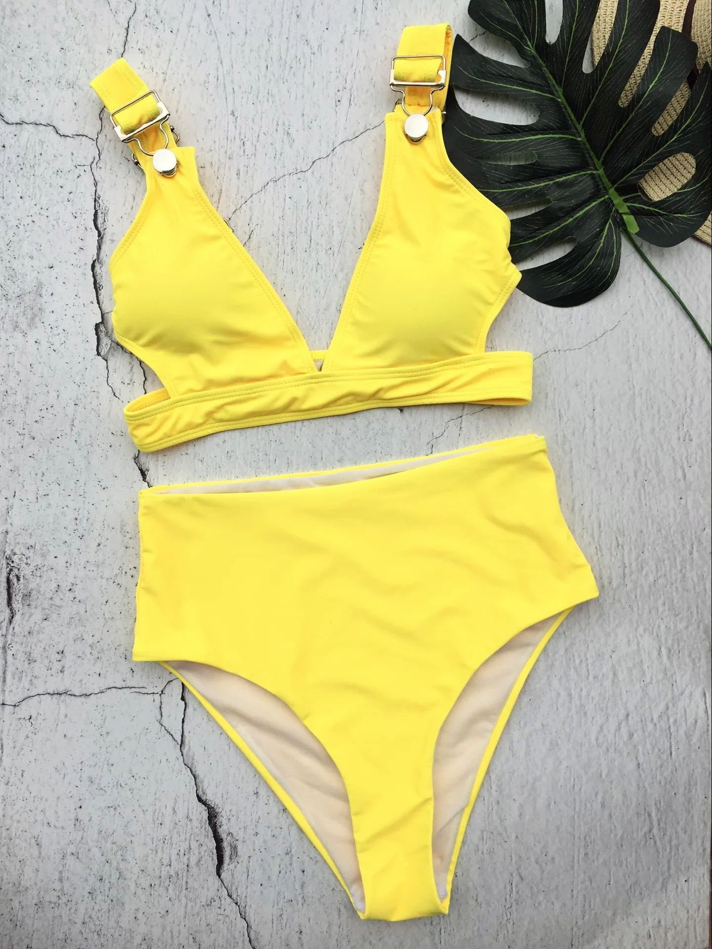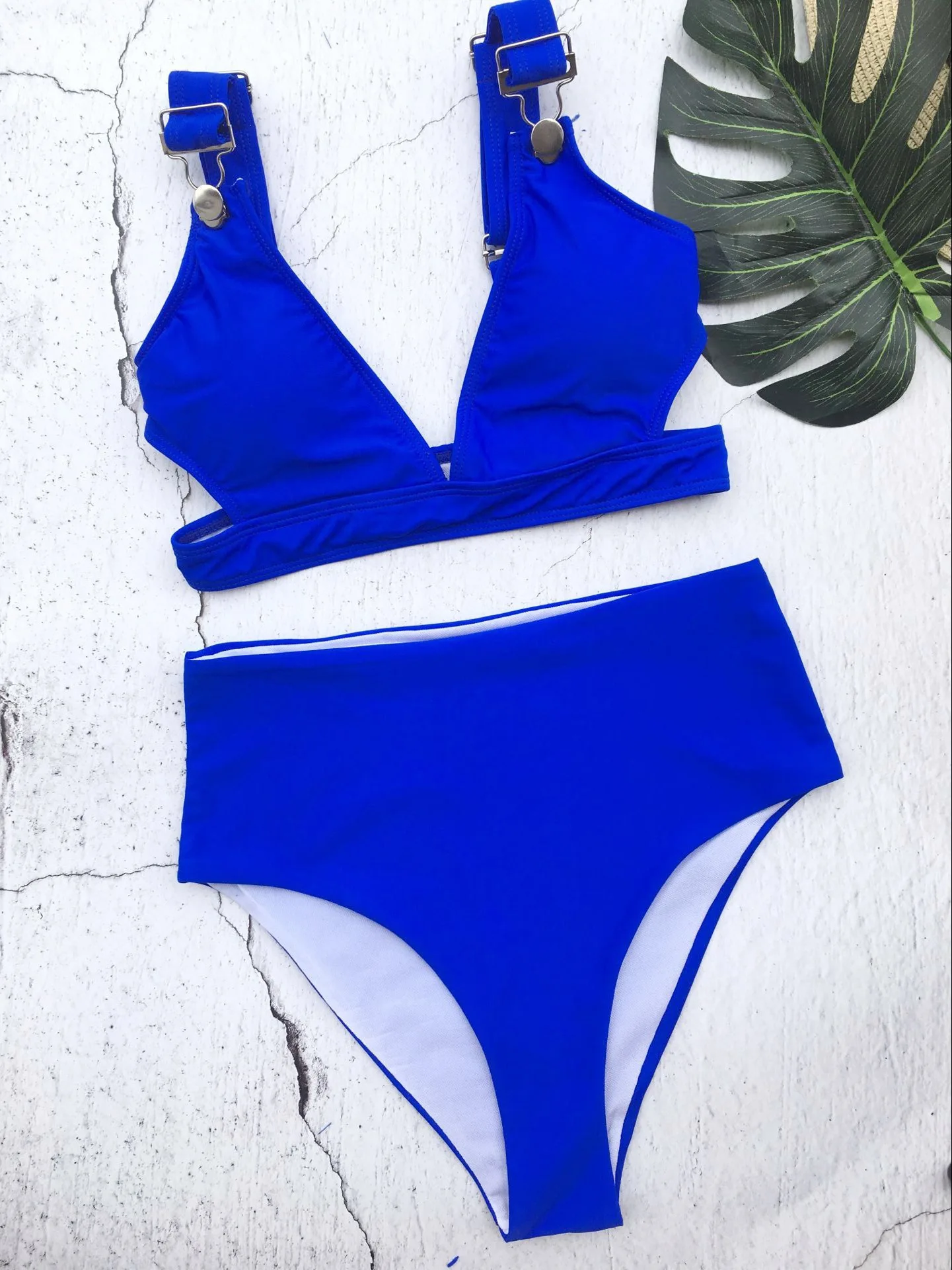 Zuoxiangru Swimwear Women Solid Color Sexy Bikini Split Bikini Bathing Suit High Waist Swimsuit Special Buckle Shoulder Strap Special Price