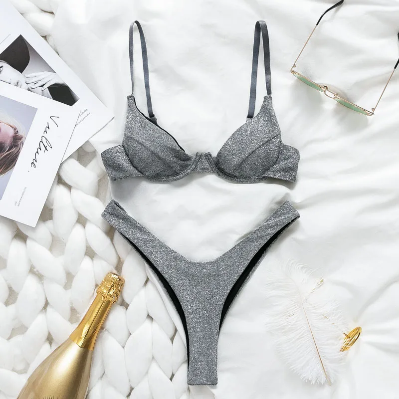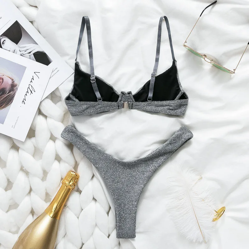 Bikinx High cut silver bathing suit Push up swimsuit micro sexy swimwear women bathers Shiny brazilian bikinis 2019 mujer swim Best Offers