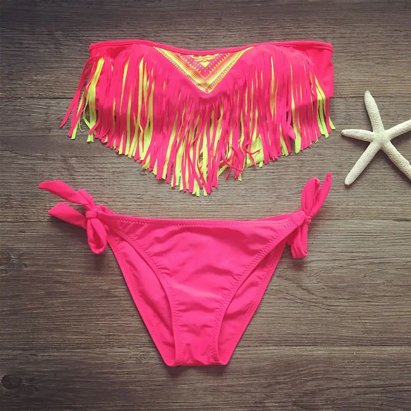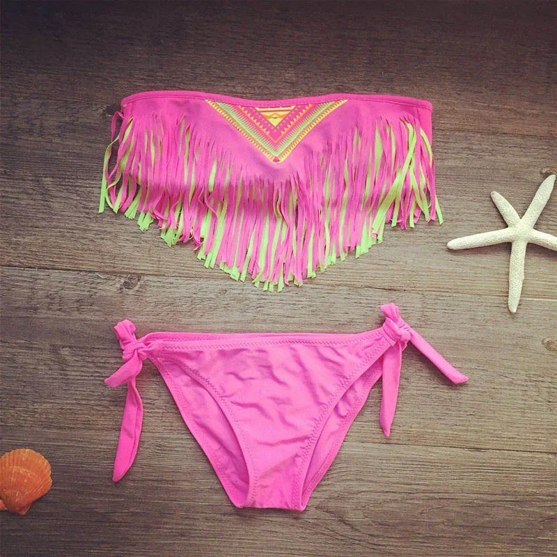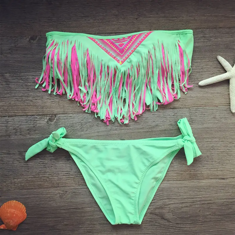2019 Summer Girls Two Piece Fringe Swimwear Triangle
