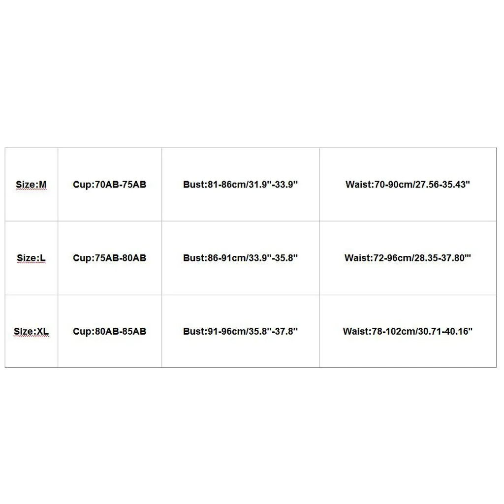 | Size:XL | Cup:80AB-85AB | Bust:91-96cm/35.8"-37.8" | Waist:78-102cm/30.71-40.16'' |