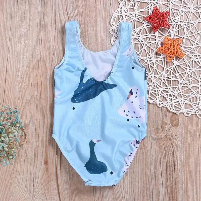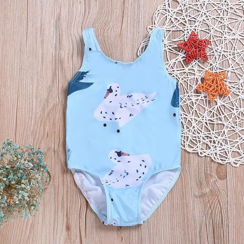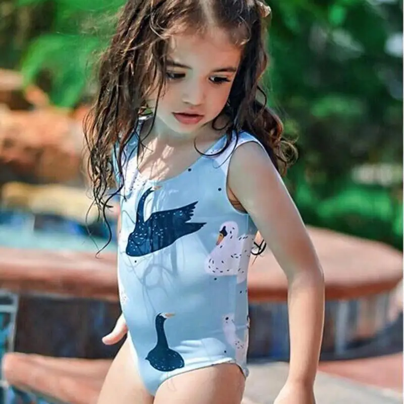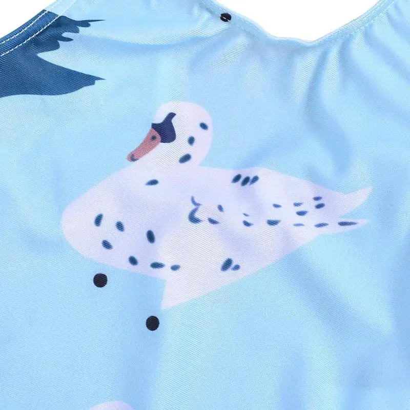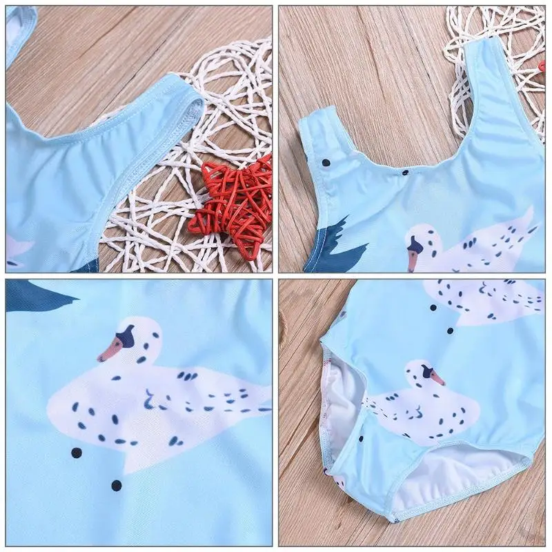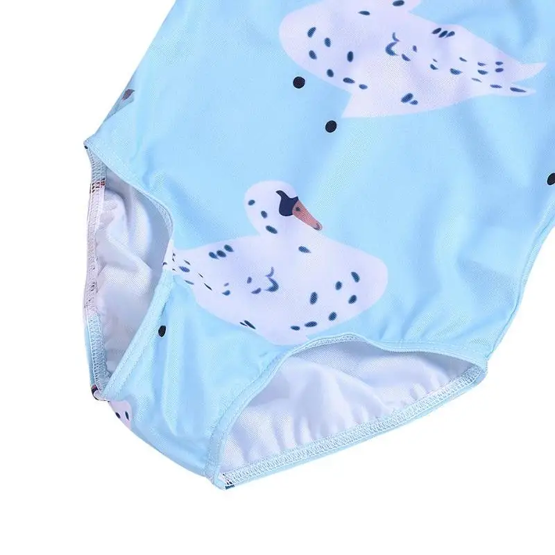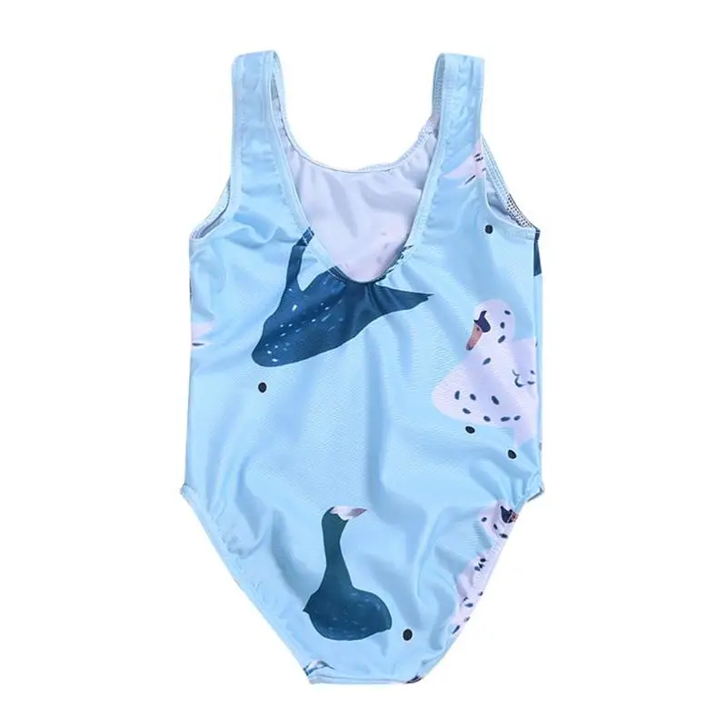 Girls Summer Sleeveless One-Piece Swimsuit Cute Swan Print O-Neck Clothing Swimming Beach Swimwear